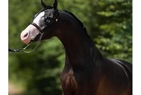 Color/markings: Black Bay with blaze, socks and blue eyes.